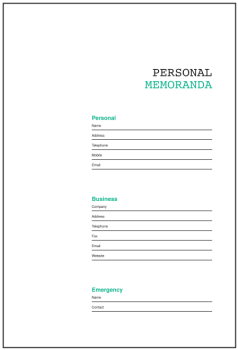 Page Layout : Personal memoranda, reference calendars, conversion chart, monthly, yearly planner and note section
