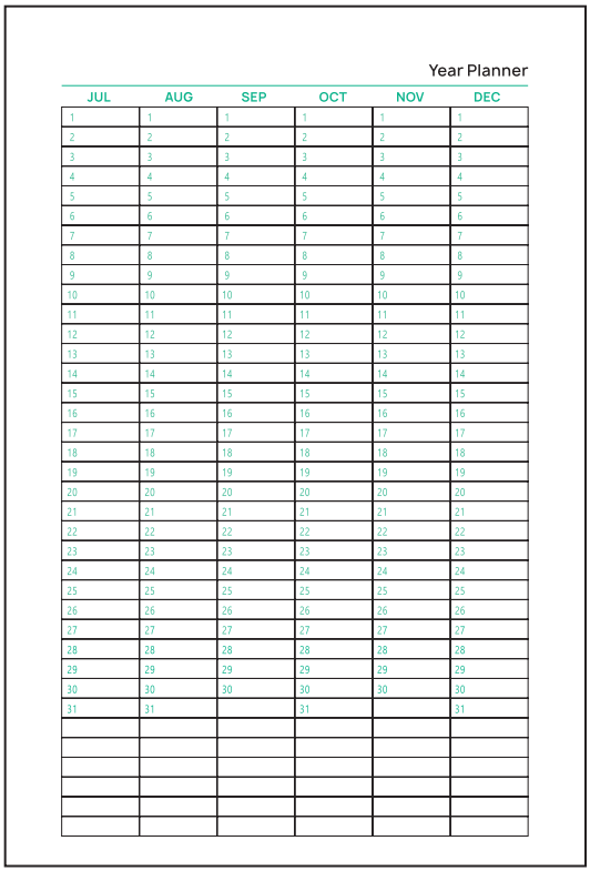 • Page Layout : Personal memoranda, reference calendars, conversion chart, monthly, yearly planner and note section