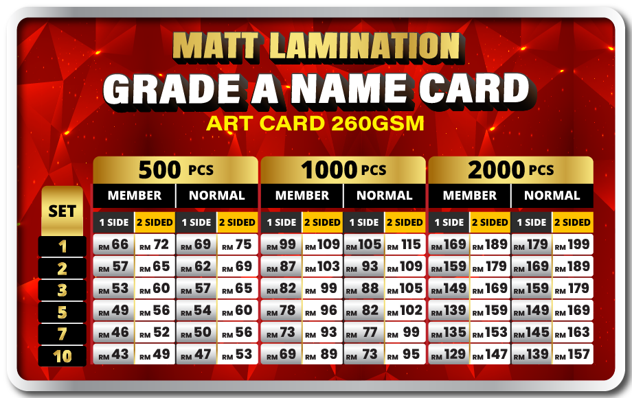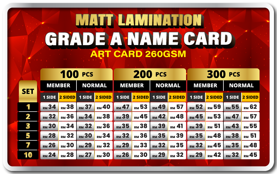 GRADE A NAME CARD - Matt Lamination- ART CARD 260GSM
