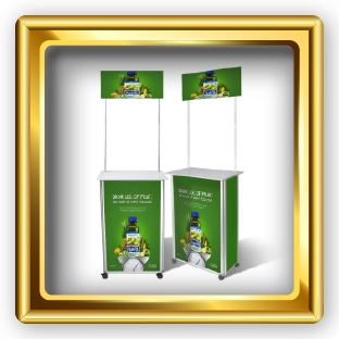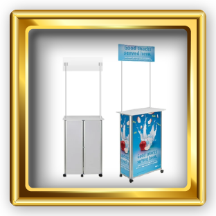 Promotion counters are lightweight and designed to attract attention at various events. They feature a round-fronted counter and an internal shelf, providing storage space. The counters can be easily set up and are foldable for compact storage. They are an effective way to engage audiences and promote your brand or products at events.