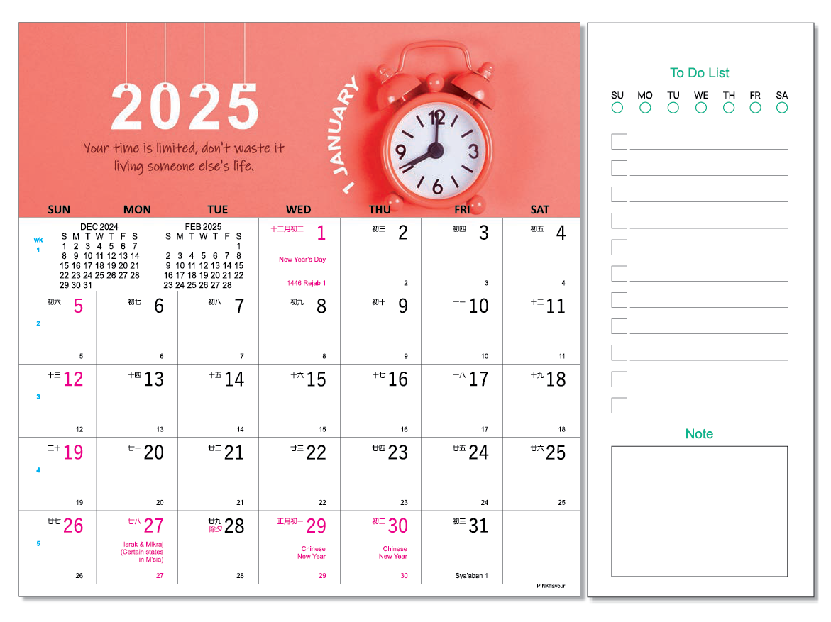 Paper : 200gsm Art Card - Calendar / 70gsm Woodfree Paper - Notepad