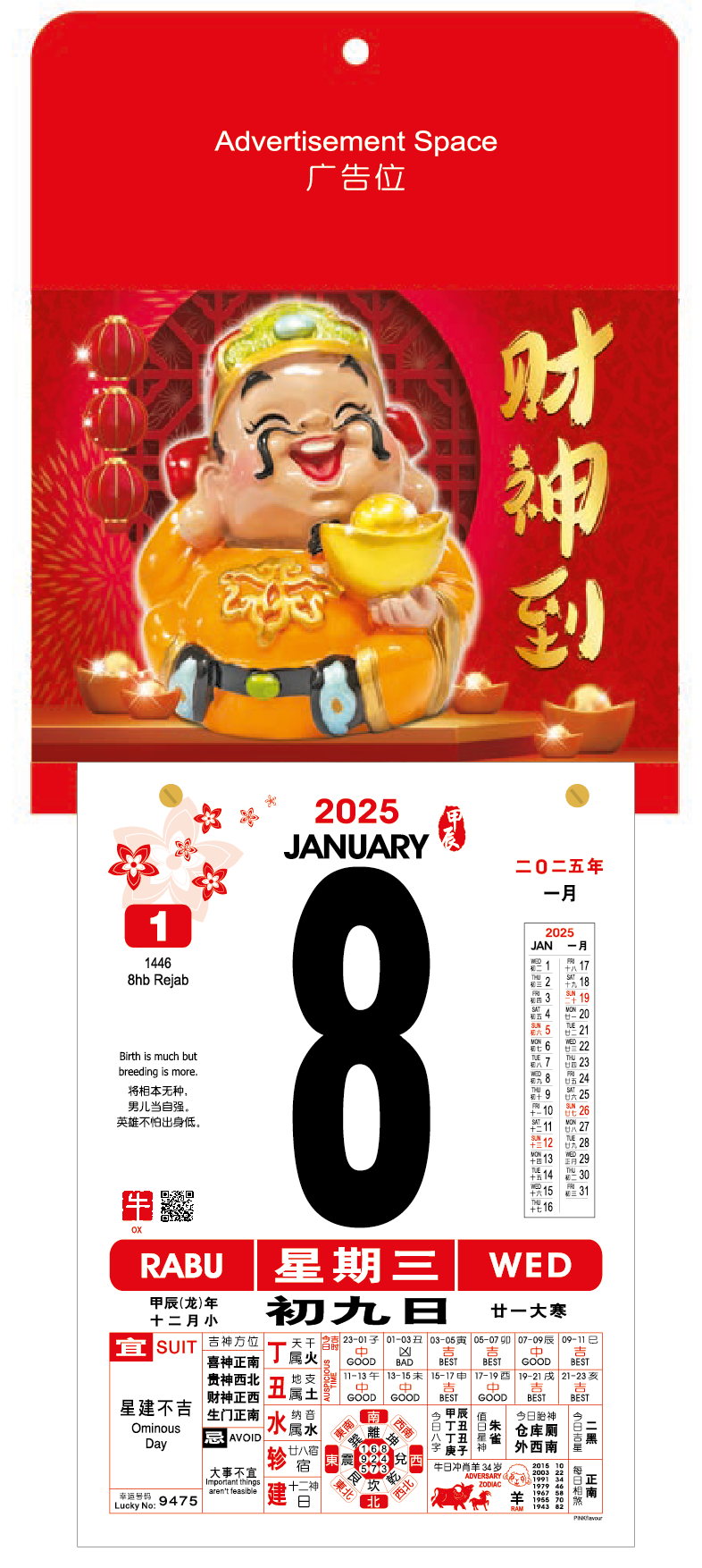 • Calendar Block Size : 172mm x 243mm (6.77" x 9.57")
