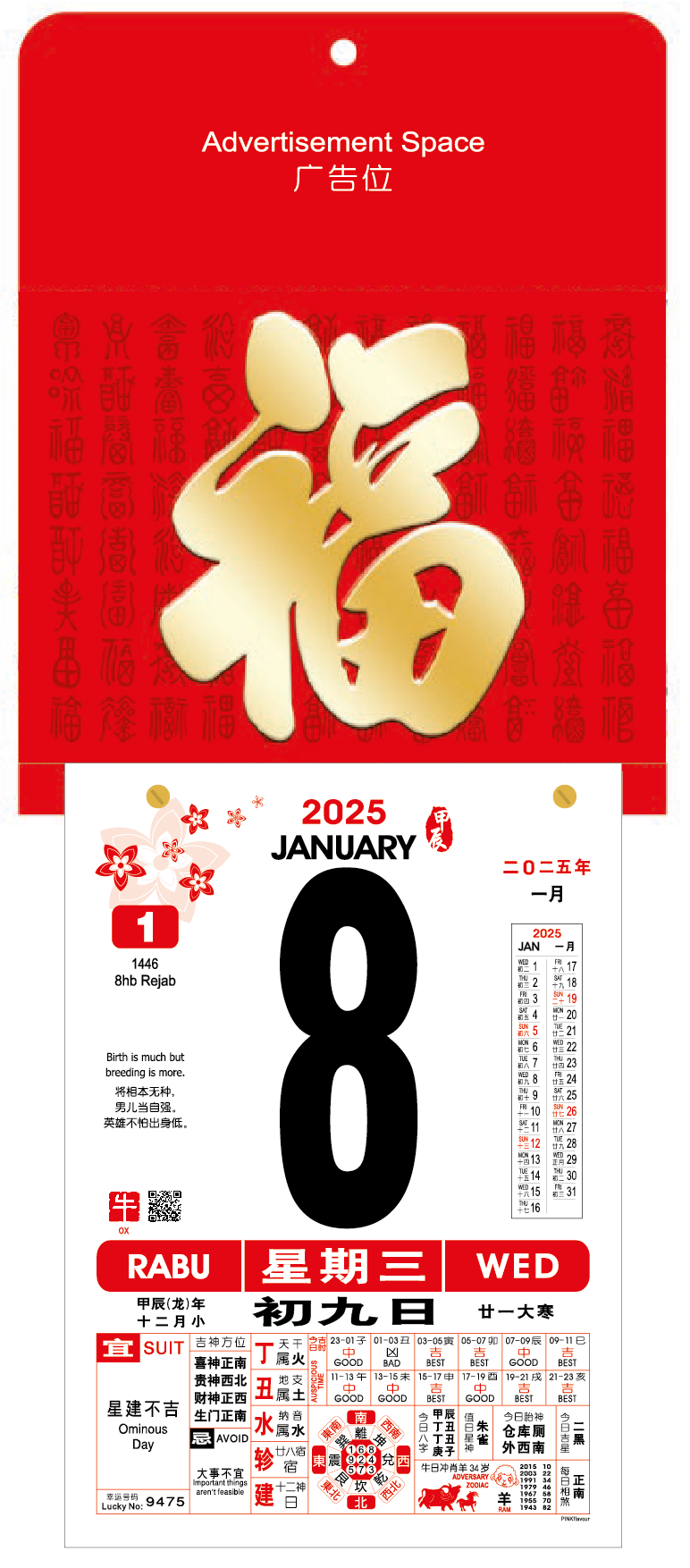 • Calendar Block Size : 172mm x 243mm (6.77" x 9.57")