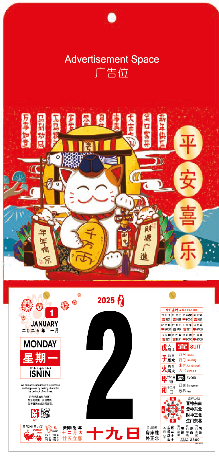 • Calendar Block Size : 190mm x 132mm (7.48" x 5.20")