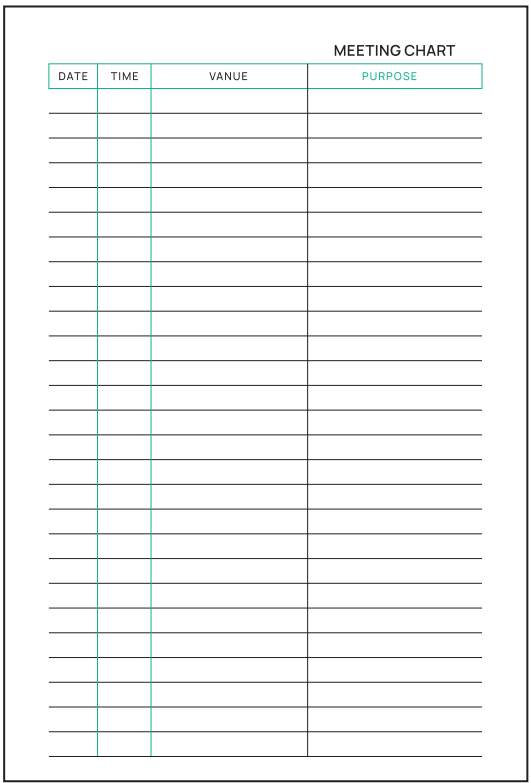 Page Layout : Personal memoranda, reference calendars, conversion chart, monthly, yearly planner and note section